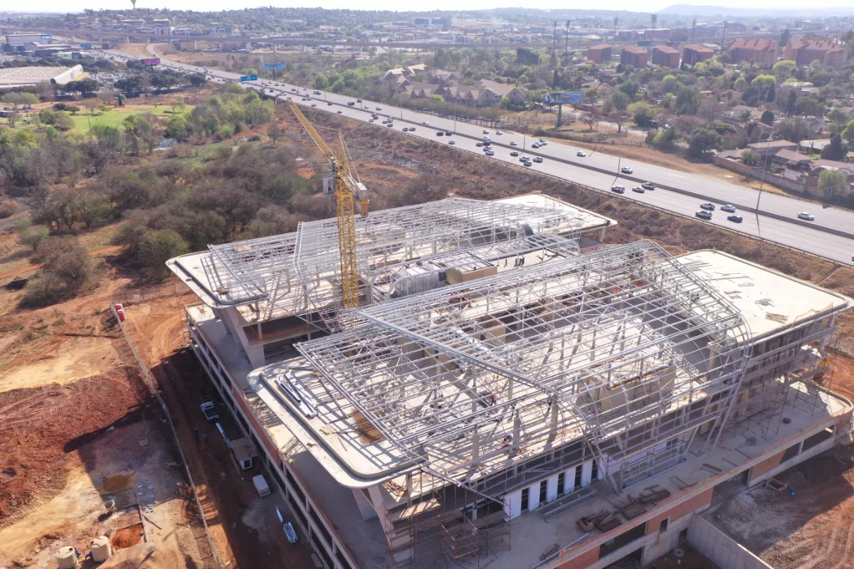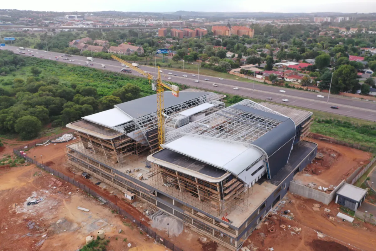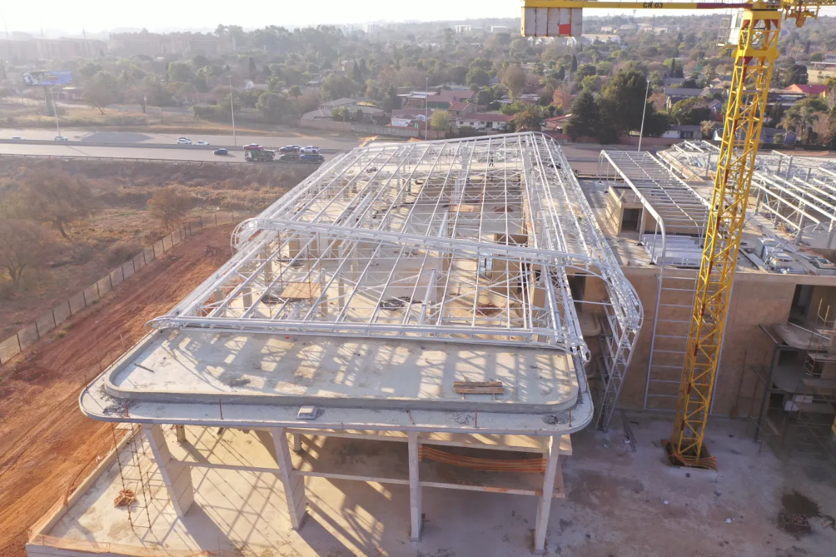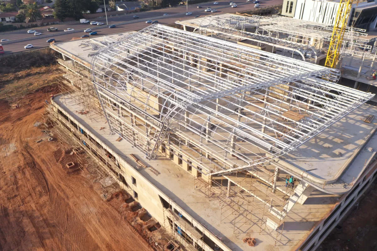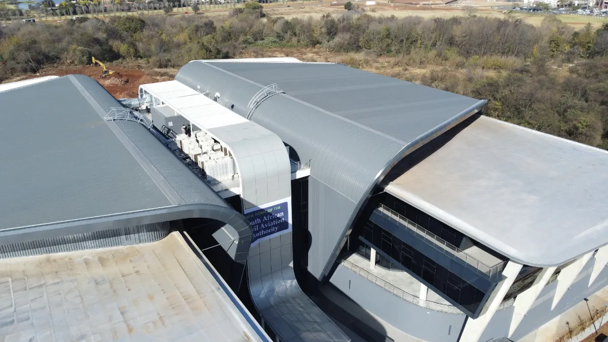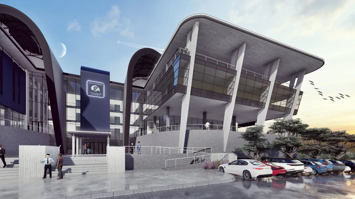 The brief was for an Office development of a 10,000m² P-Grade office space in Centurion, South Africa, designed for the South African Civil Aviation Authority (SACAA). The building needed to combine green technologies, modern design, and aviation-inspired aesthetics to meet the functional needs of SACAA while maintaining high environmental and operational standards. The facility required to achieve a minimum of a three-star Green Building Council South Africa (GBCSA) rating for water, energy, and waste management, and will accommodate 350 covered and open parking bays. The roof design will feature around 30% concrete roof and 70% sheeted roofing. The CAA steel roof structural consists of two wings symmetrically mirrored about a central roof structure.