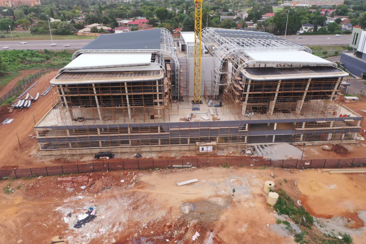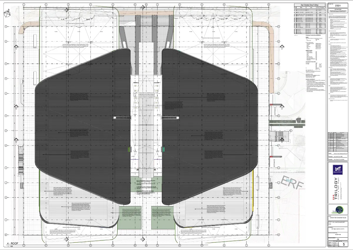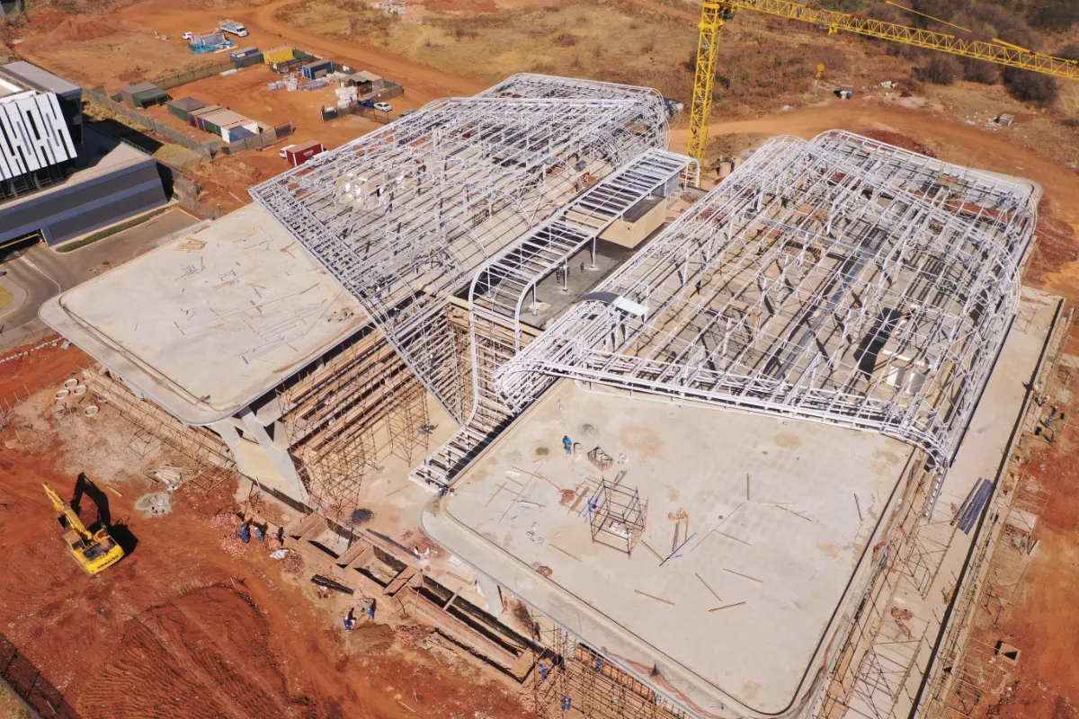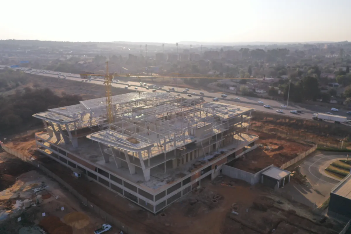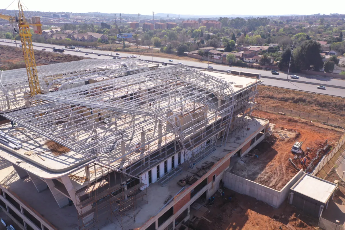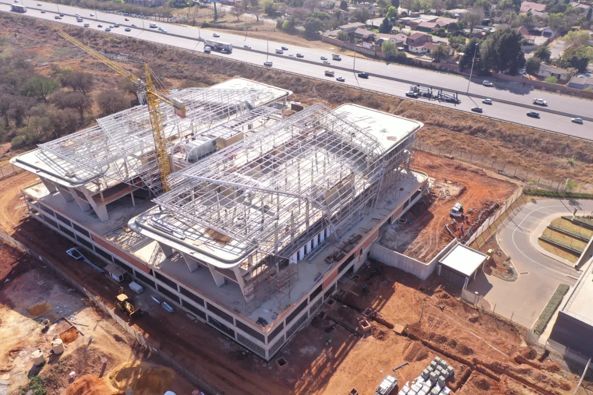 The brief was for an Office development of a 10,000m² P-Grade office space in Centurion, South Africa, designed for the South African Civil Aviation Authority (SACAA). The building needed to combine green technologies, modern design, and aviation-inspired aesthetics to meet the functional needs of SACAA while maintaining high environmental and operational standards. The facility required to achieve a minimum of a three-star Green Building Council South Africa (GBCSA) rating for water, energy, and waste management, and will accommodate 350 covered and open parking bays. The roof design will feature around 30% concrete roof and 70% sheeted roofing. The CAA steel roof structural consists of two wings symmetrically mirrored about a central roof structure.