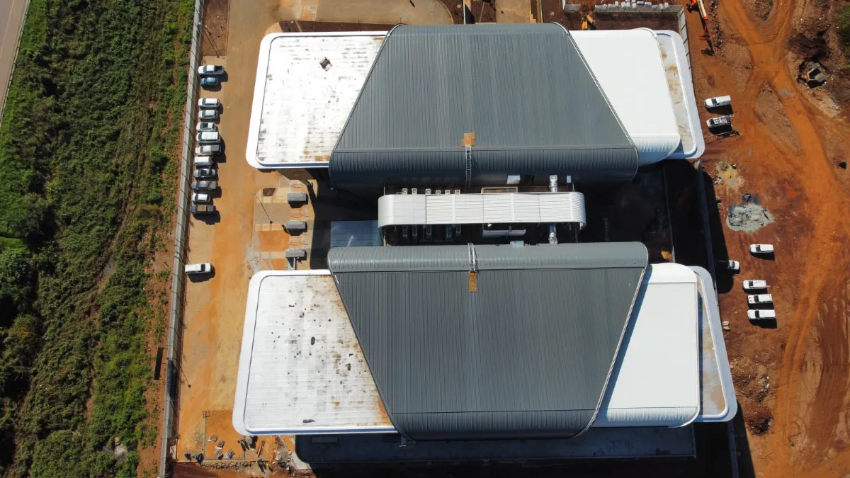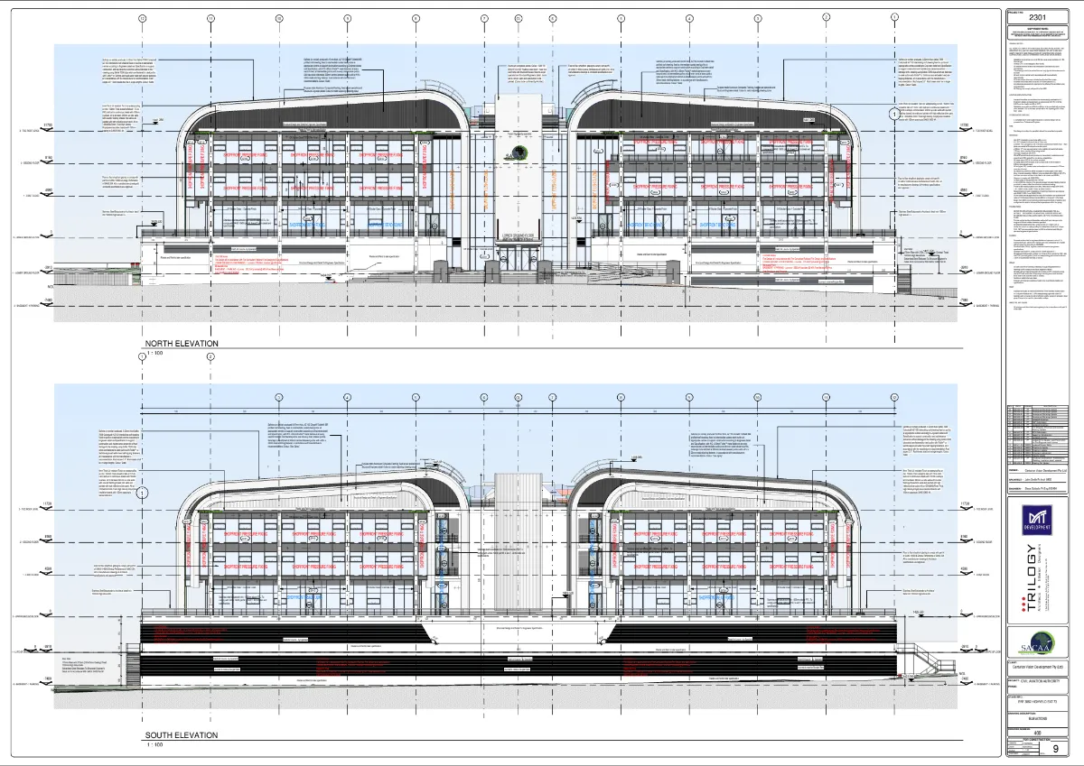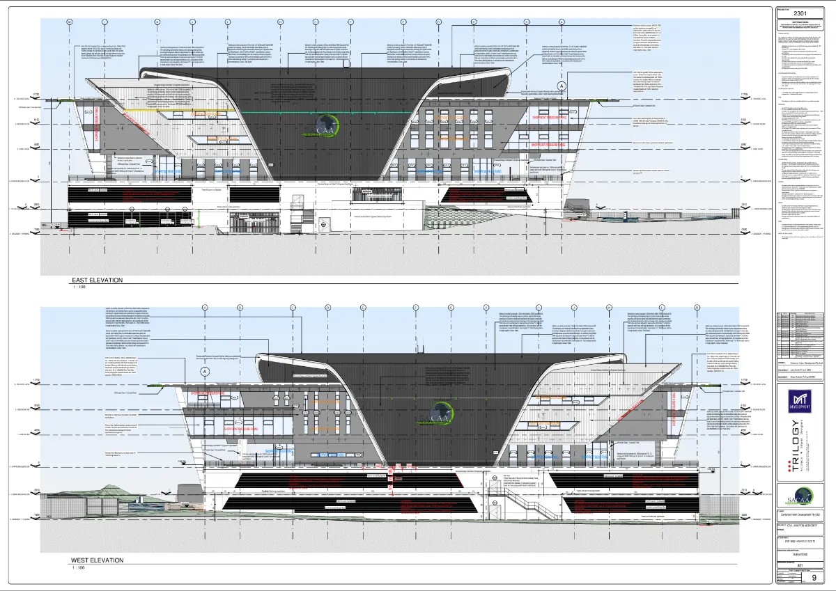 This creates a complex geometry for the structure that required the development of a 3D space frame consisting of CFLC Purlins, Trusses and Girder Trusses, Beam Sections and Tubular Sections acting as bracing or tension stays.