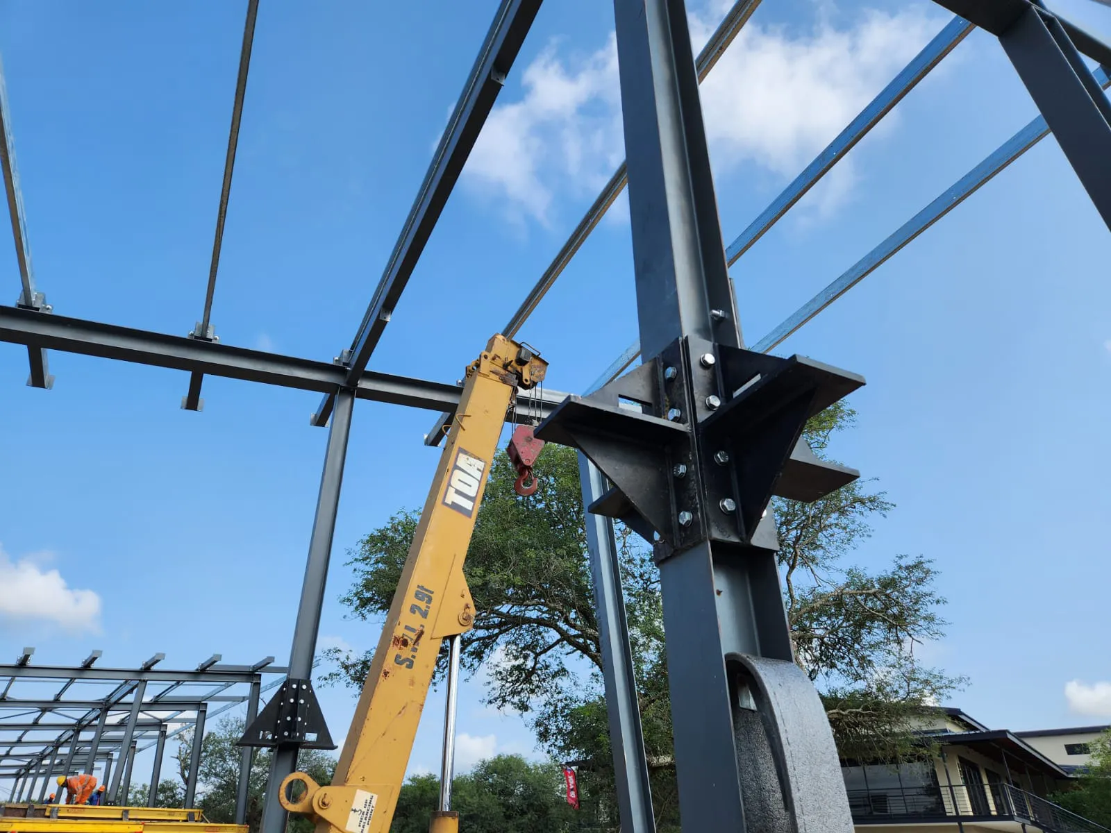The pinned connection to the column must have made erection quite difficult.