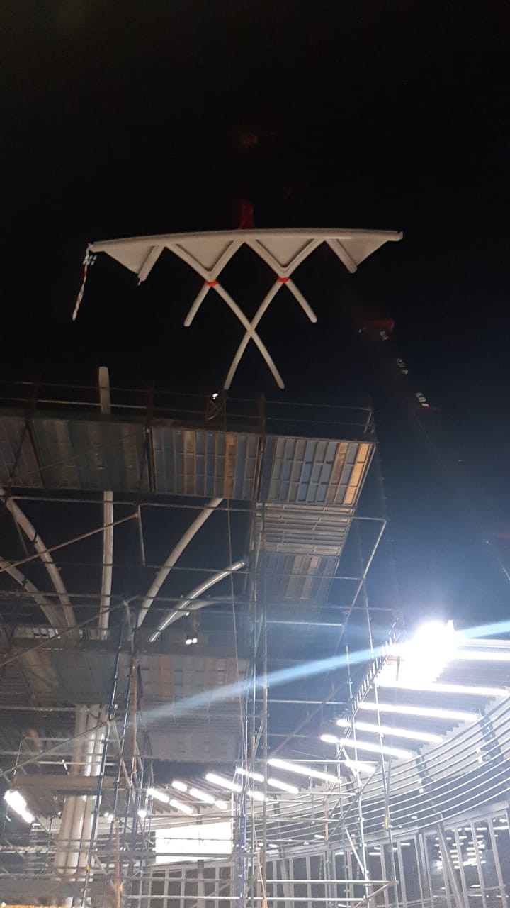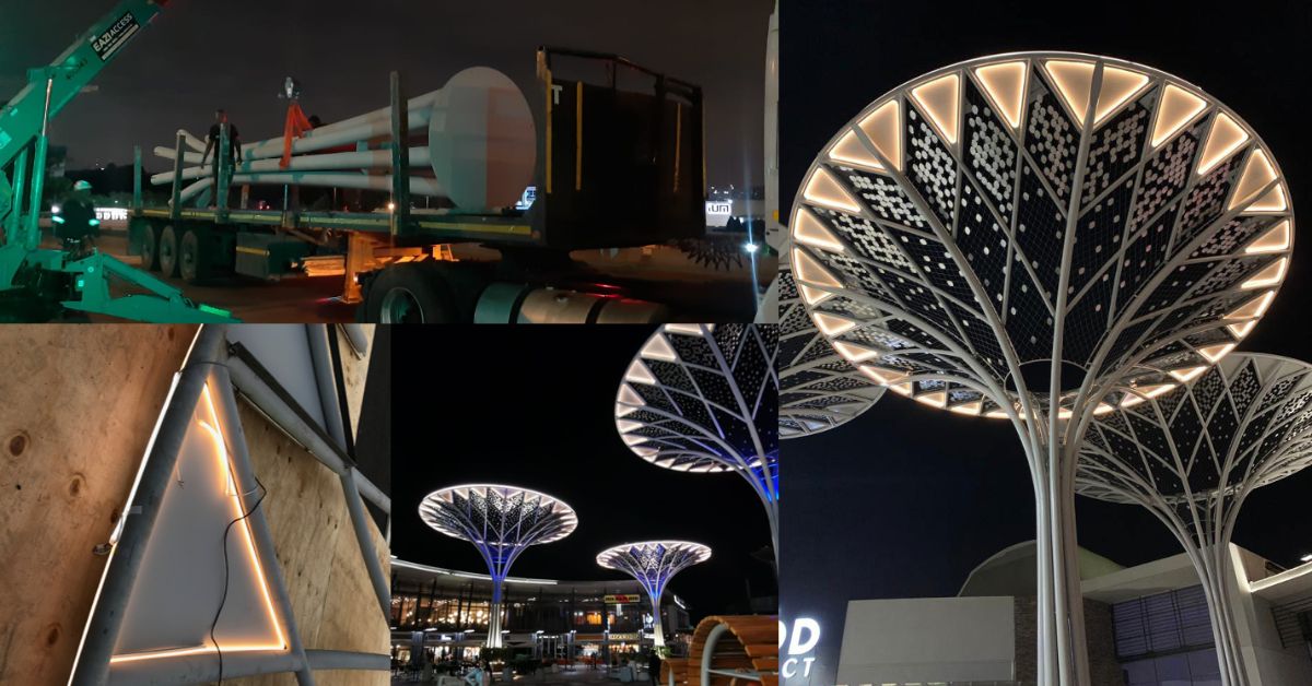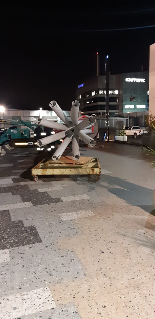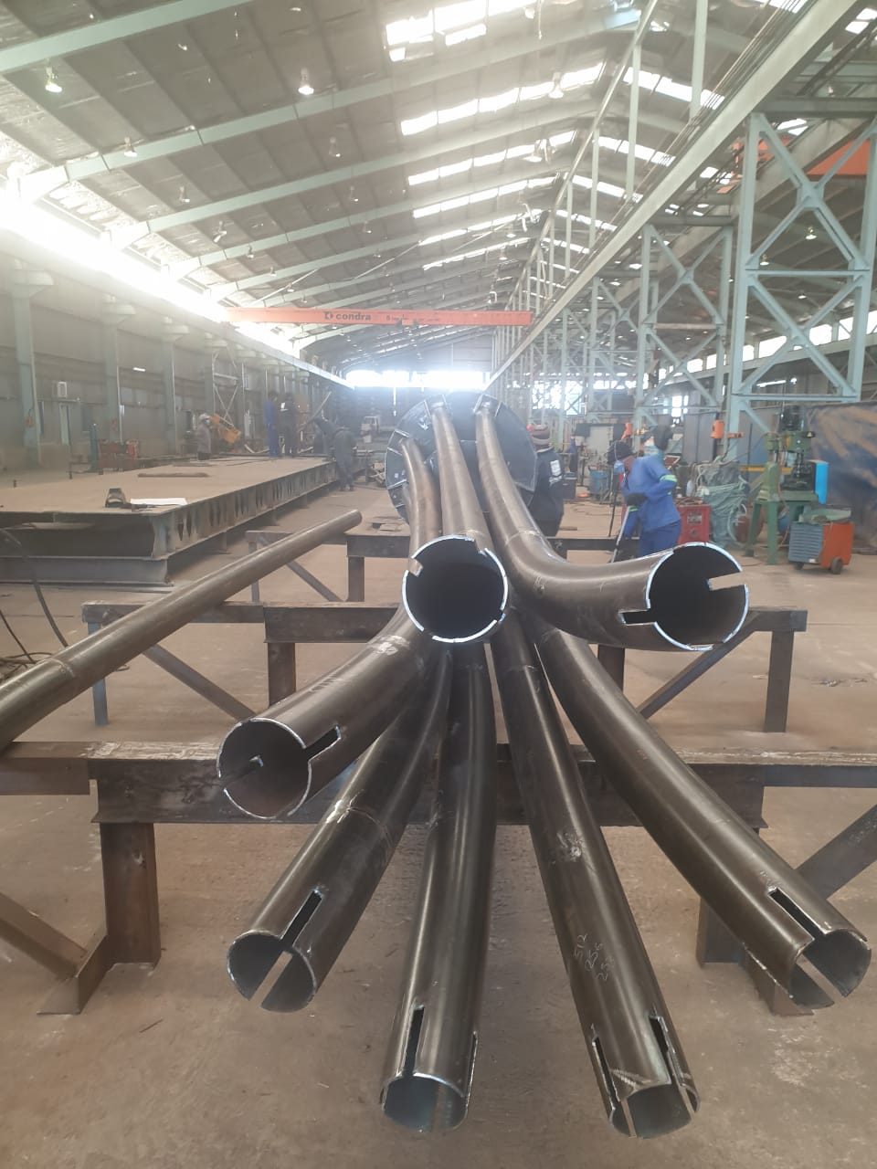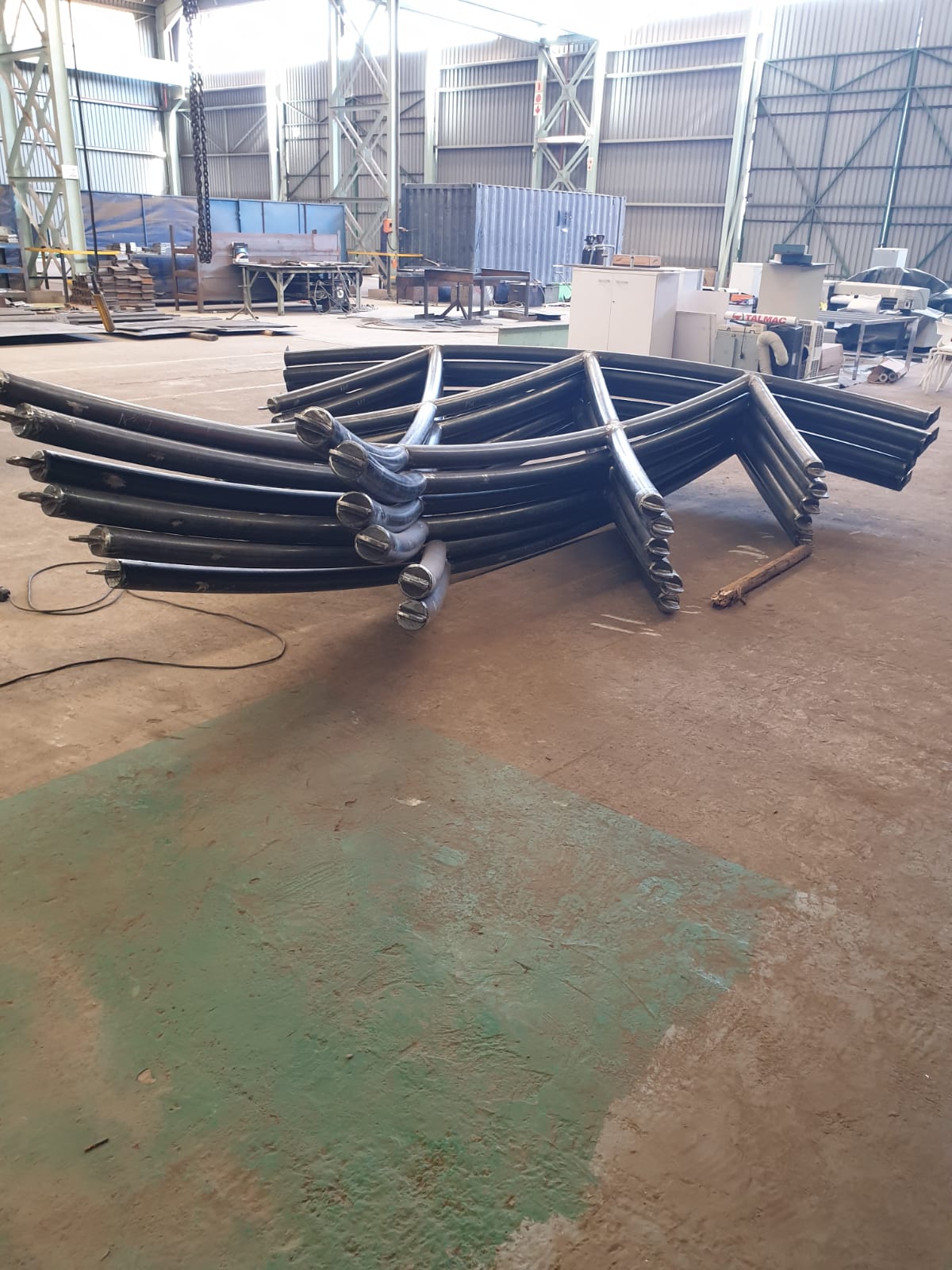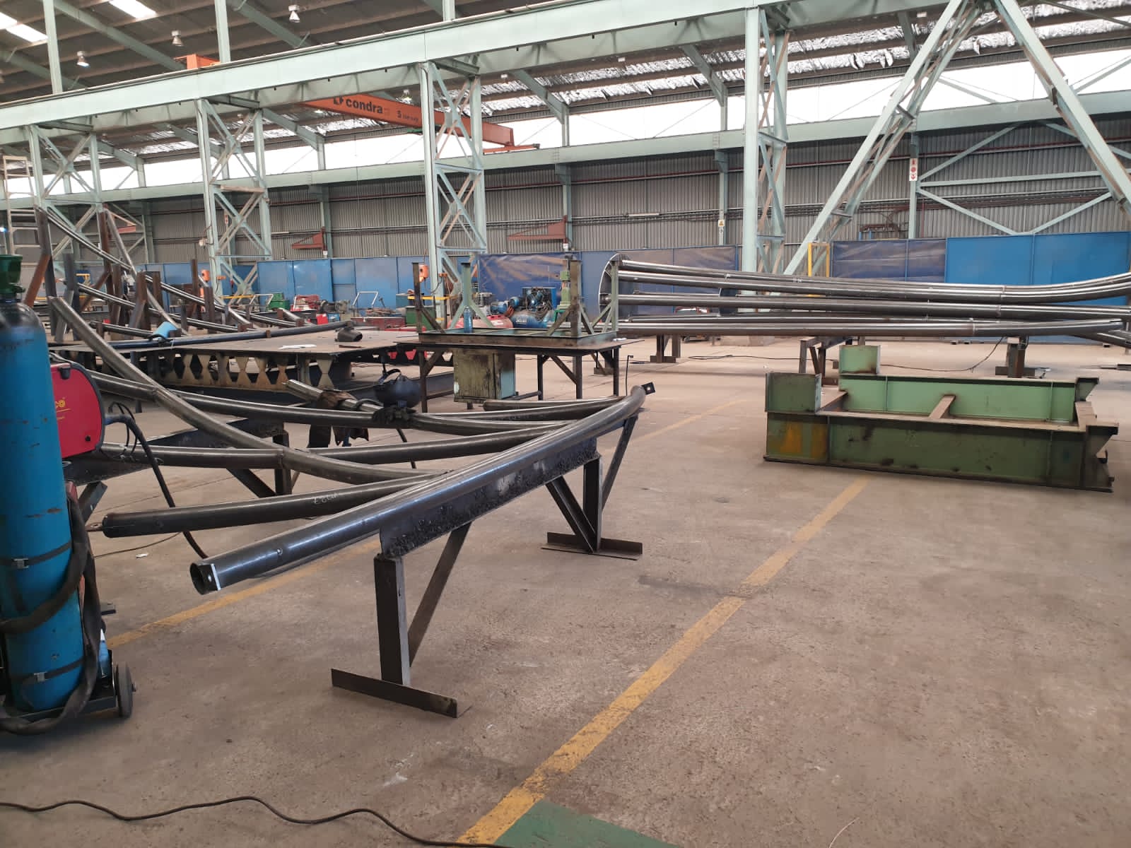 Accuracy and wrap around infill members needed to be rolled perfectly to keep the perfect symmetry of each of the structures. These pizza slices had to all be jigged per tree in 3 dimensions order for all locating bolts to fit perfectly. The scale varied for each of the 3 trees.