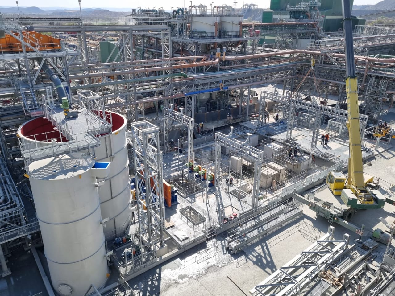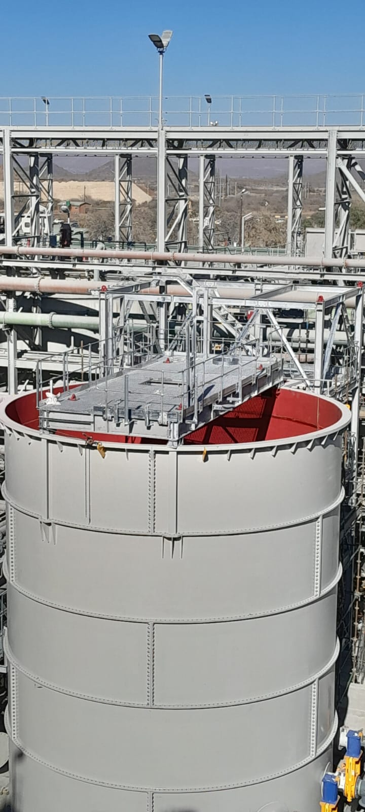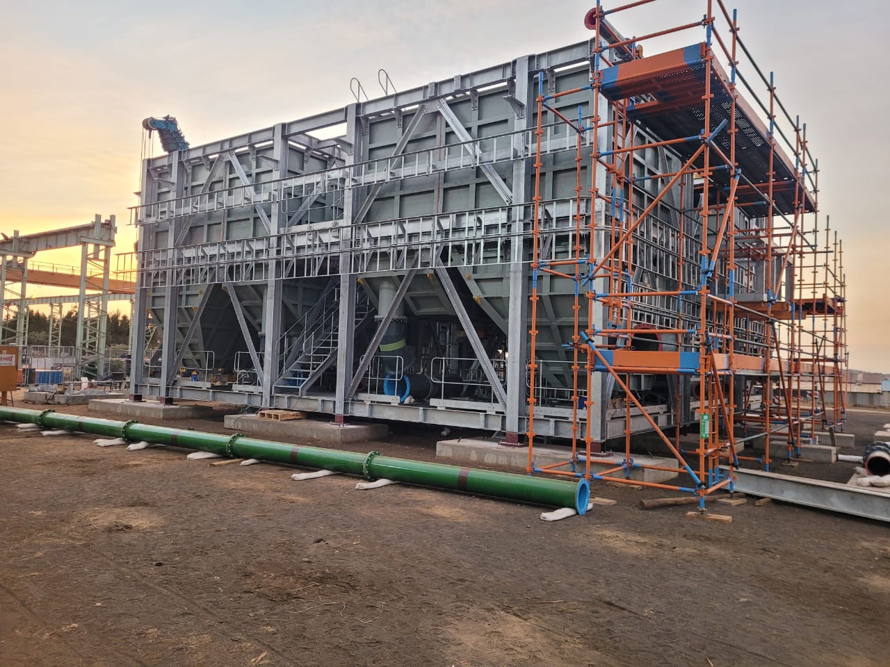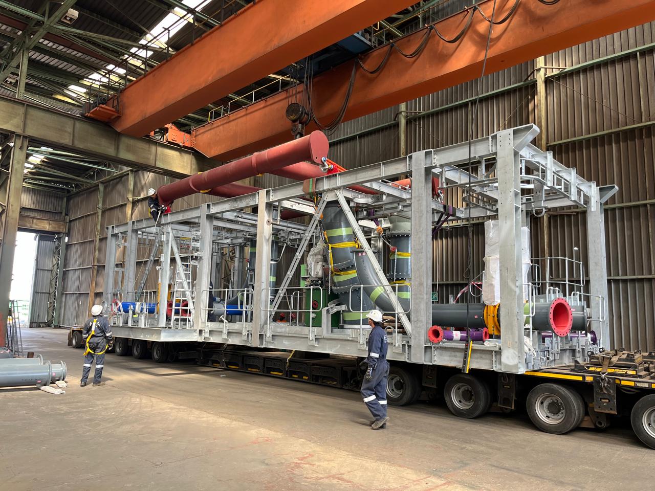 The slurry concentrator modules were designed as fully modular steel structures integrating screen supports, pump platforms, crane beams, tank tops, and walkways. The framing consisted of hot-rolled steel beams, columns, and bracing, arranged into stacked modules to form a complete plant.