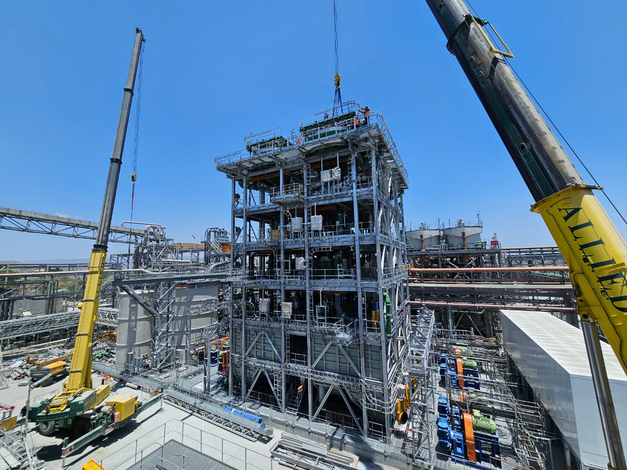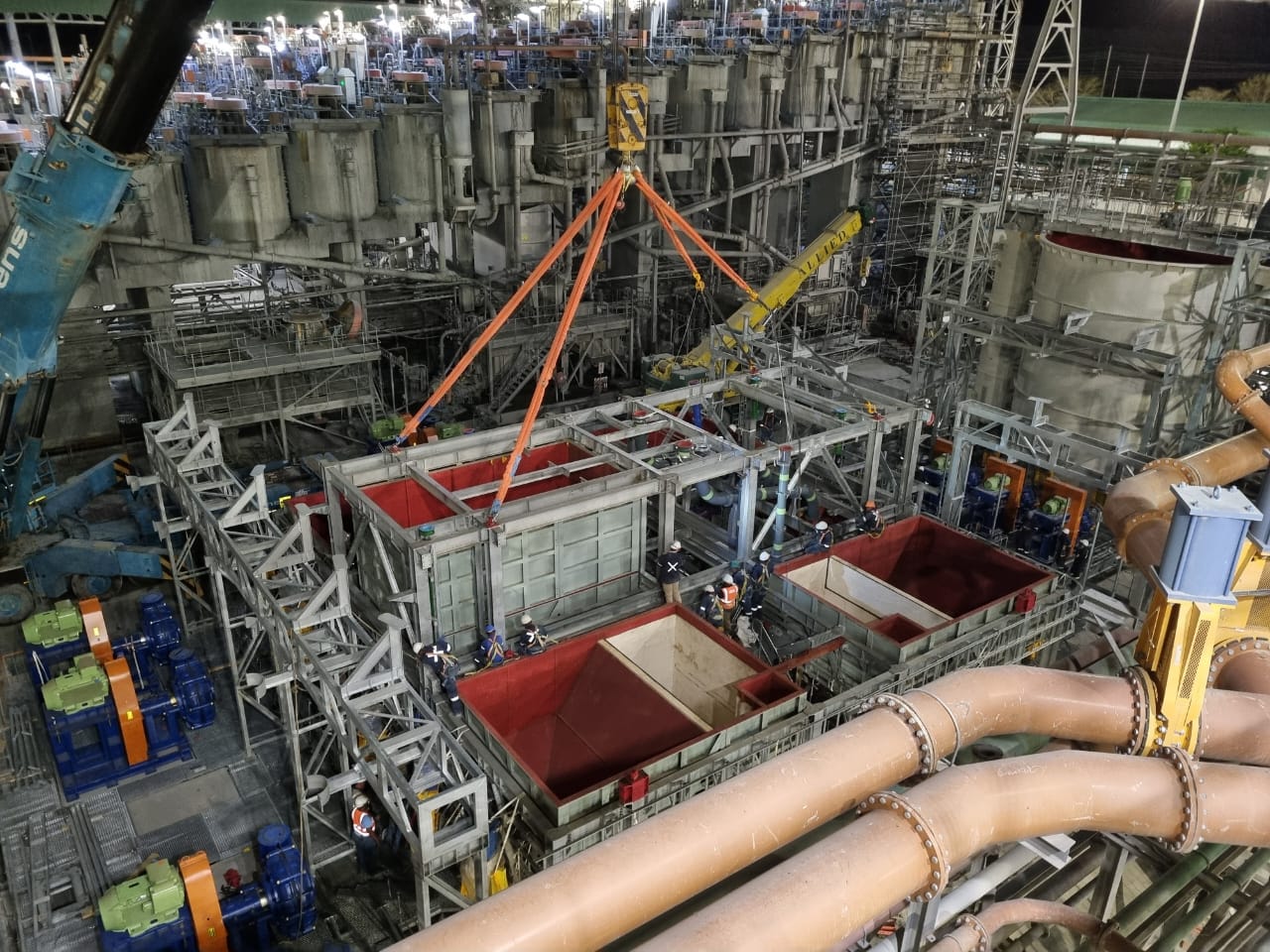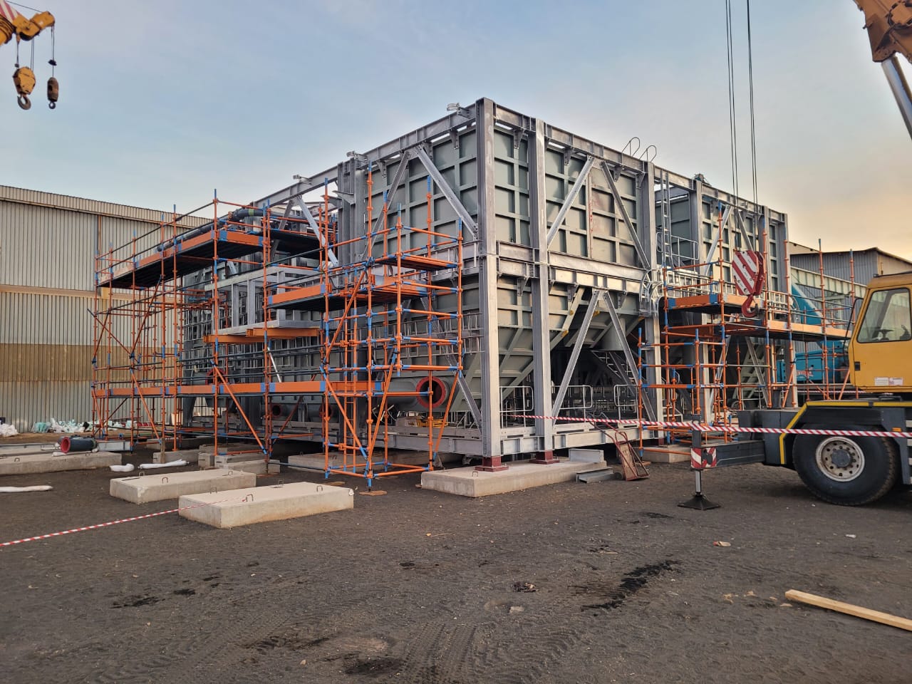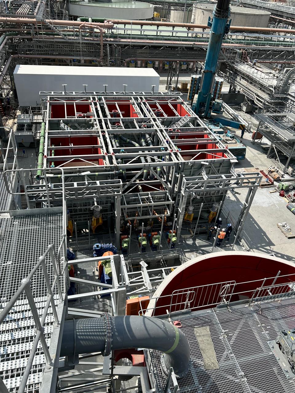 The slurry concentrator modules were designed as fully modular steel structures integrating screen supports, pump platforms, crane beams, tank tops, and walkways. The framing consisted of hot-rolled steel beams, columns, and bracing, arranged into stacked modules to form a complete plant.