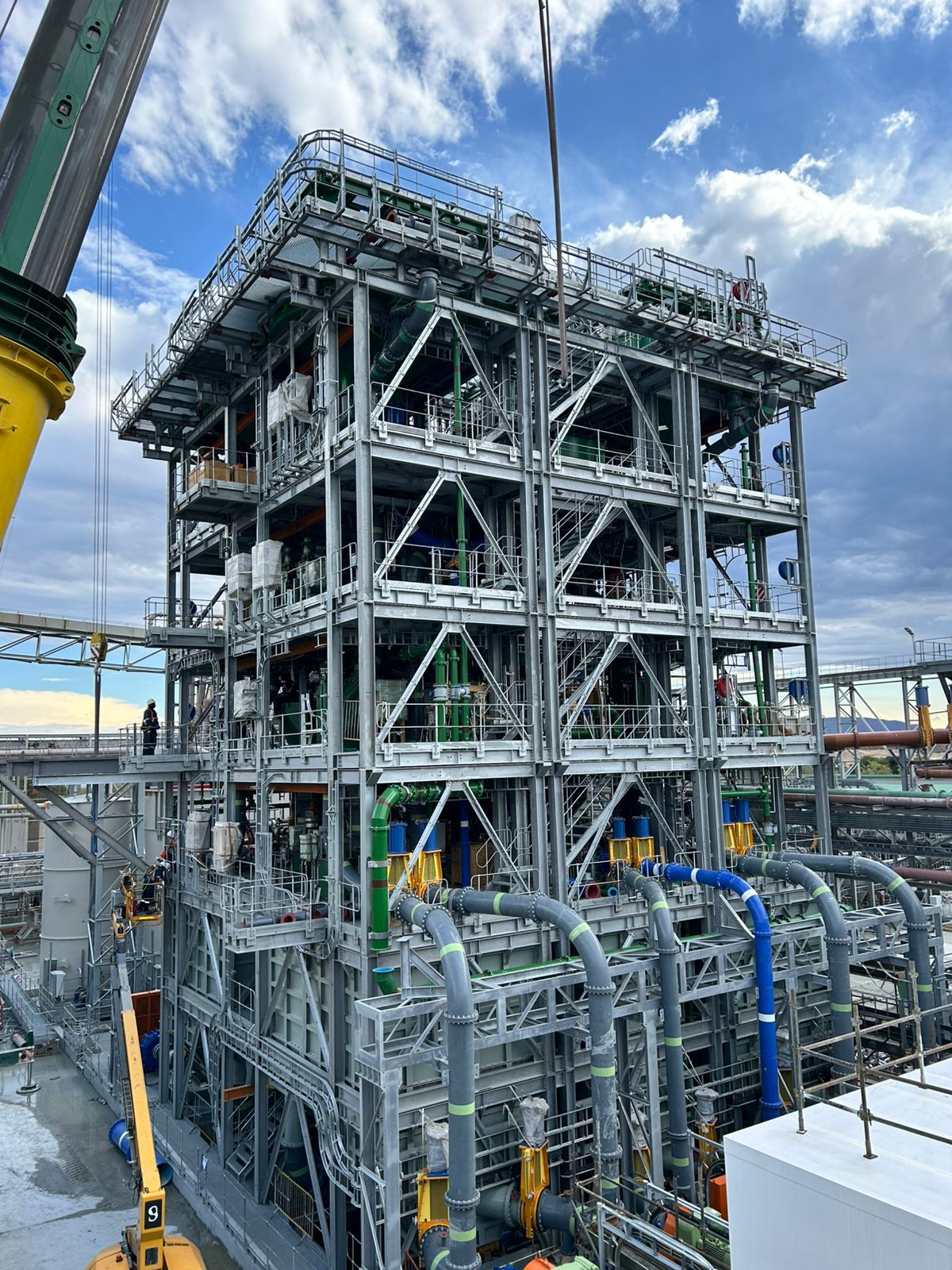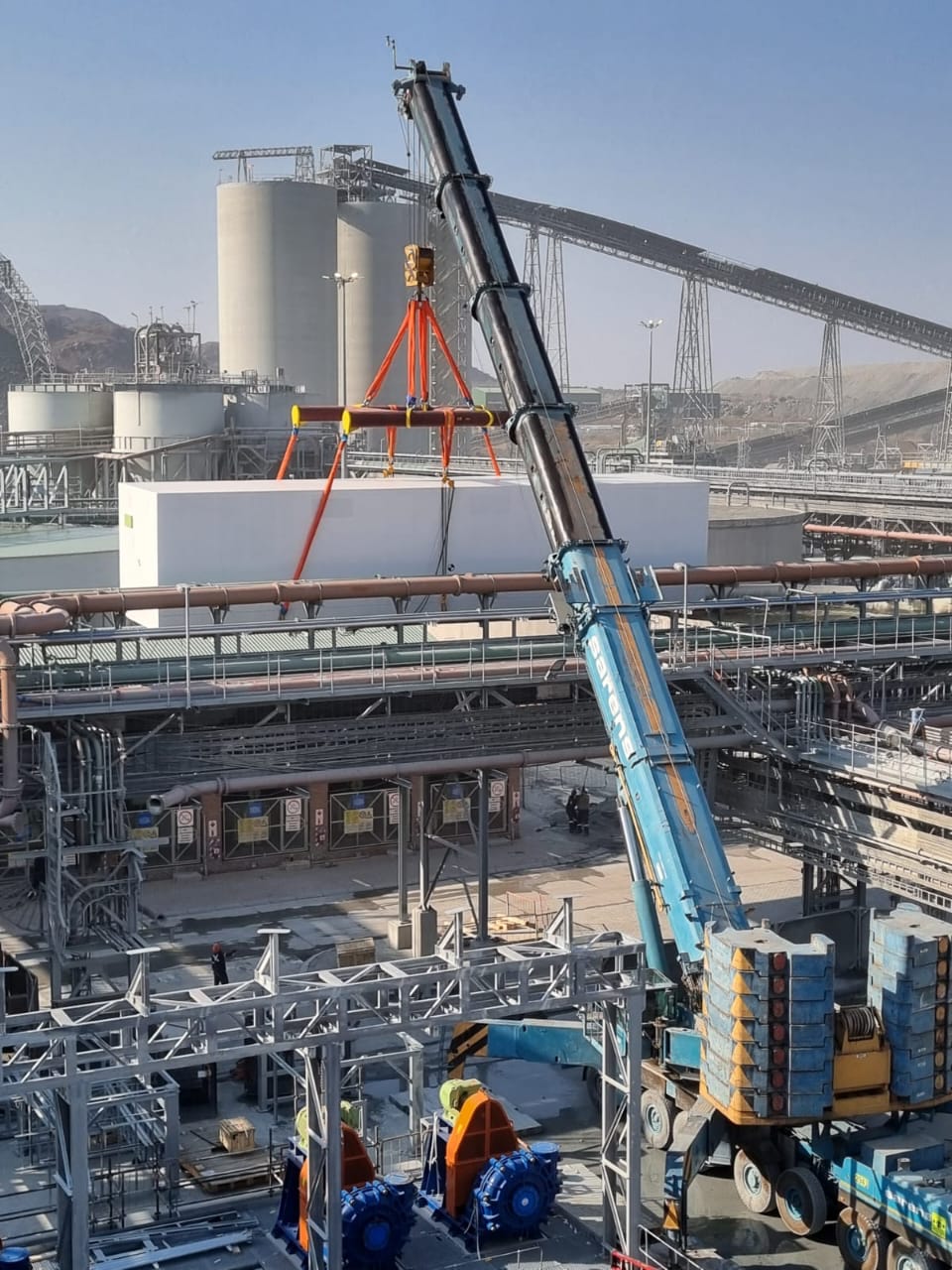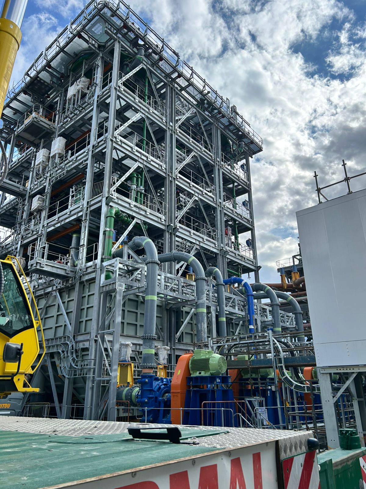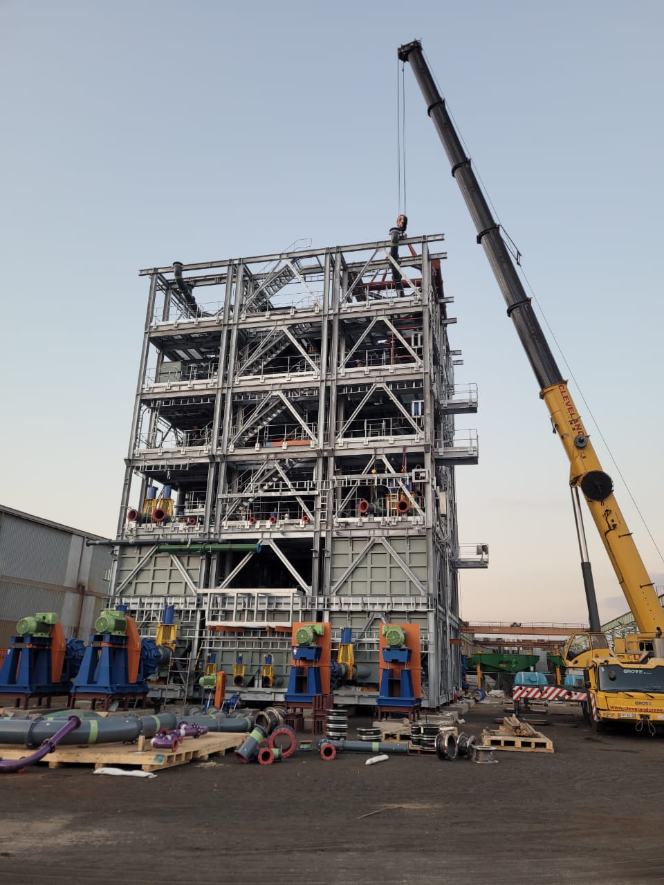 The slurry concentrator modules were designed as fully modular steel structures integrating screen supports, pump platforms, crane beams, tank tops, and walkways. The framing consisted of hot-rolled steel beams, columns, and bracing, arranged into stacked modules to form a complete plant.