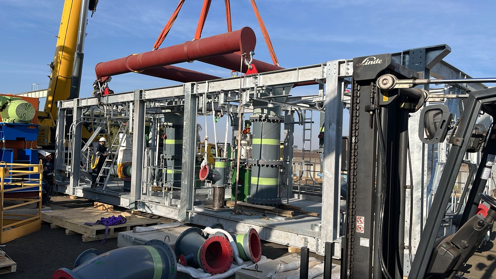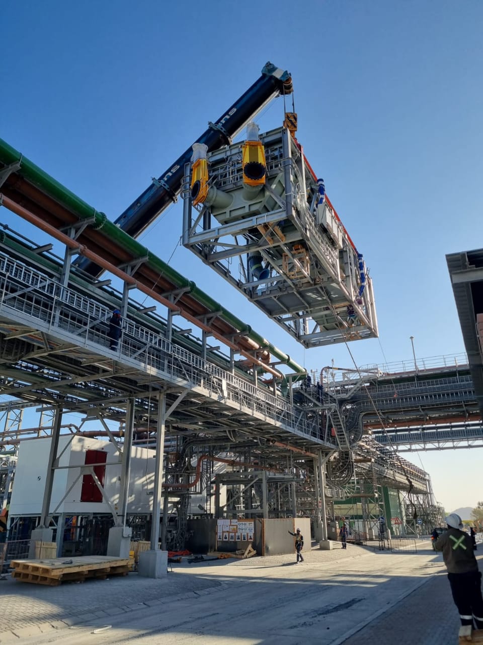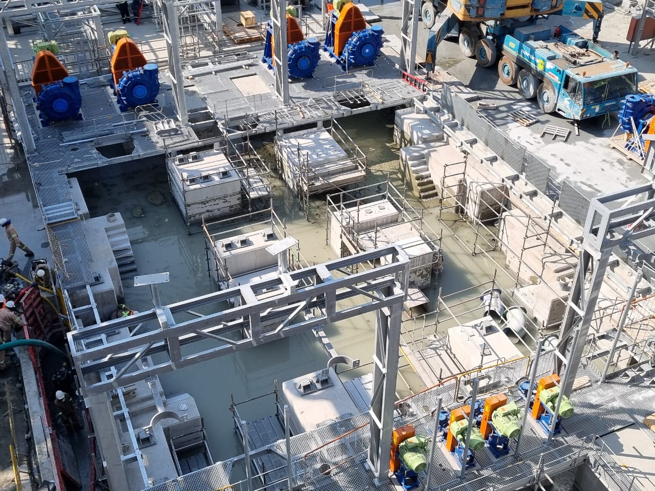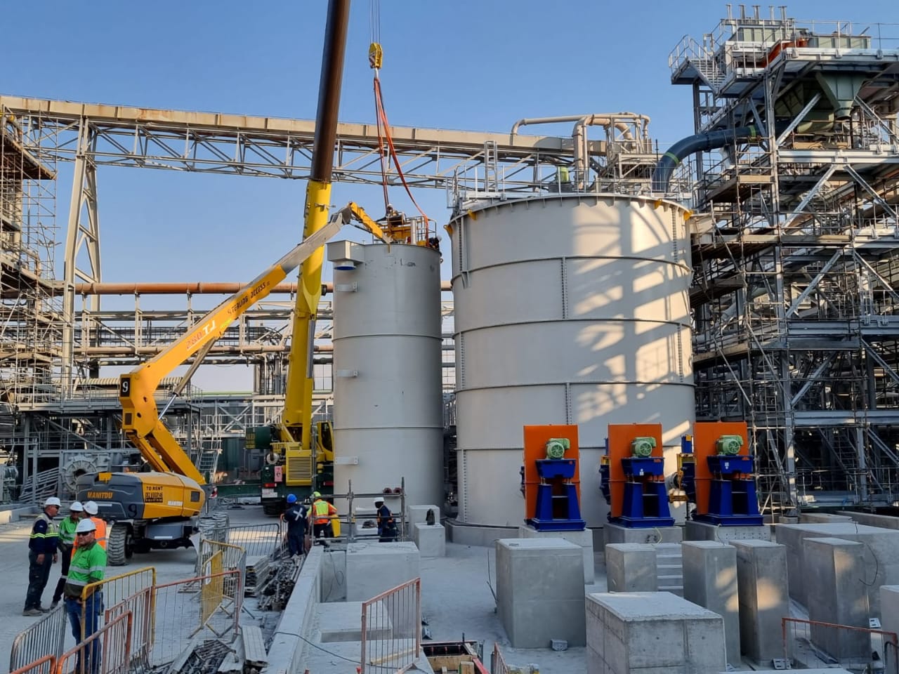 The slurry concentrator modules were designed as fully modular steel structures integrating screen supports, pump platforms, crane beams, tank tops, and walkways. The framing consisted of hot-rolled steel beams, columns, and bracing, arranged into stacked modules to form a complete plant.