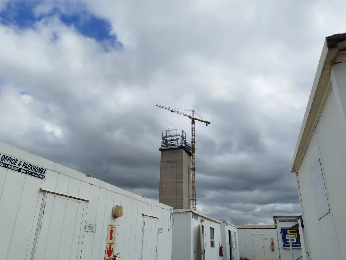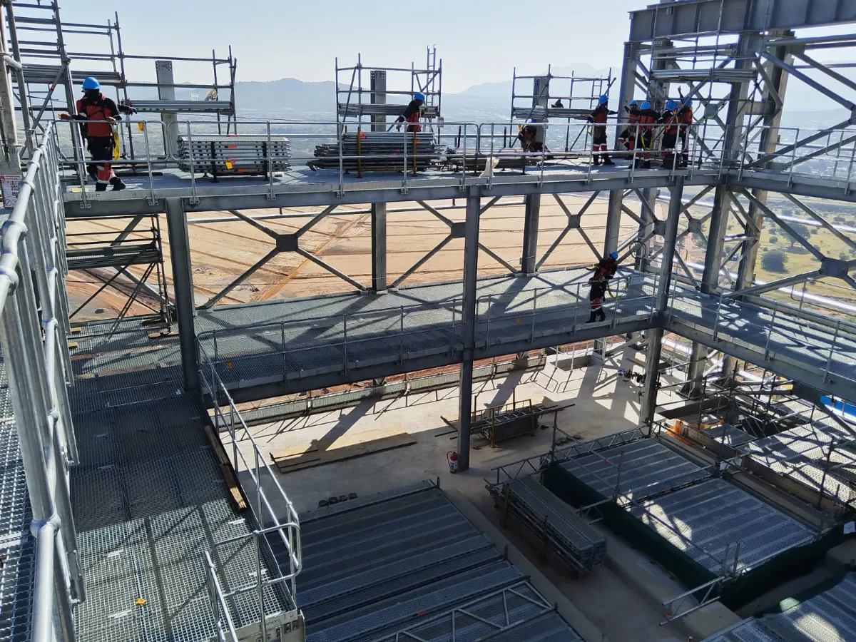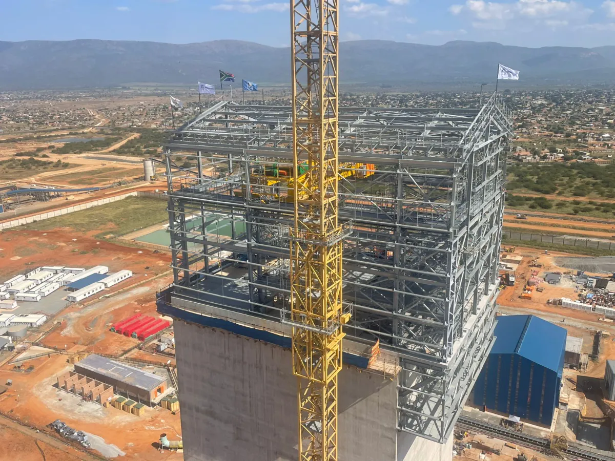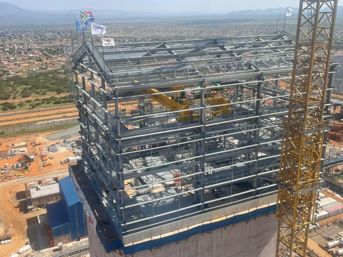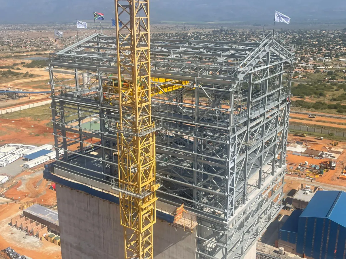 It is a mining structure so the brief was purely functional. The structure as a whole is a steel winder house erected on top of a concrete headgear. The steel structure is made up of a portal frame supported from laced columns. There is a large crane girder supported on top of the laced column section. The bracing of the structure around the cantilever portion acts to create a large truss system providing redundancy in the cast in plates.