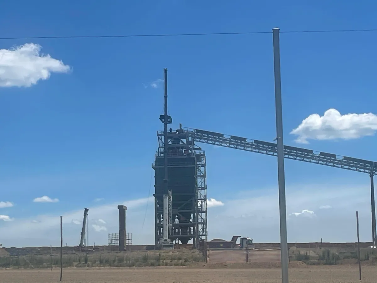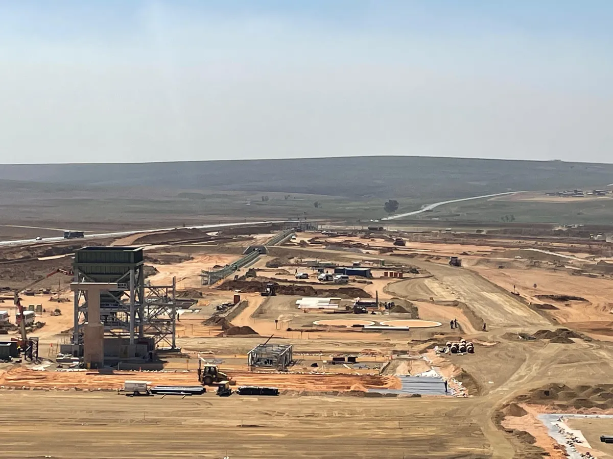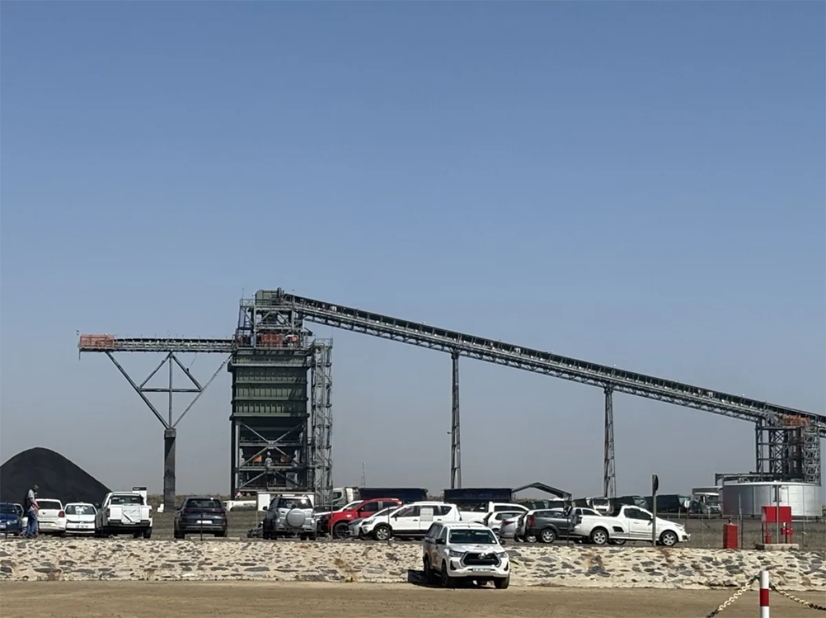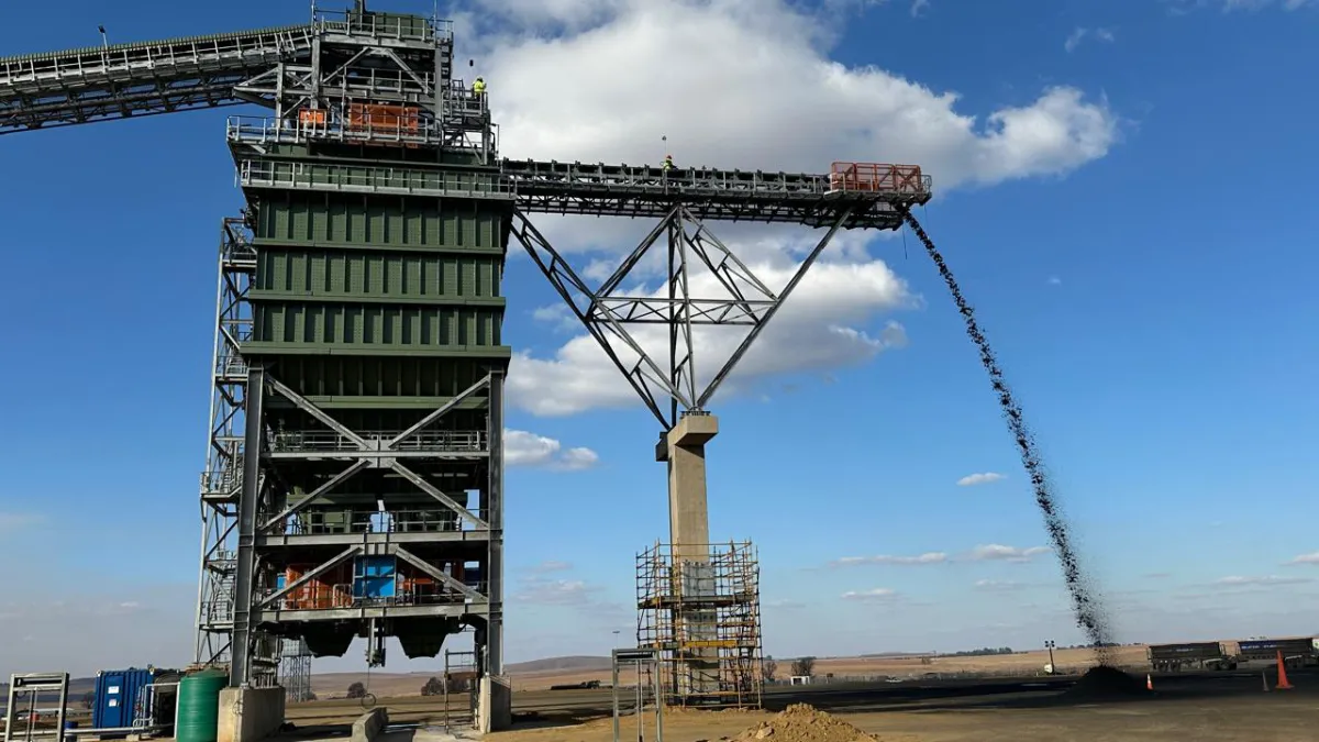 To prevent any interruption to the underground mining operation caused by a high LOS bin level, the LOS feed conveyor discharge chute is equipped with an automatic overflow mechanism. This overflow mechanism automatically diverts excess material to the throw-out stockpile when the LOSsurge bin is full and returns feed to the LOS as soon as truck loading operations reduce the bin level. The LOS surge bin is designed for expanded flow operation and is equipped with twin axi-symmetric mass flow outlet allowing for loading of 2 tandem interlink trucks in parallel. Each of the bin outlets is equipped with a hydraulically operated radial gate and vertically adjustable profile chute. Vertical adjustment of the profile chute allows the load-outstation to accommodate different truck heights and capacities.The LOS surge bin has a live capacity of 1000 tons coal. The combined volume of the surge bin and the 10 000 ton throw-out stockpile is sufficient to buffer the continuous mine operations from the discontinuous trucking operations.