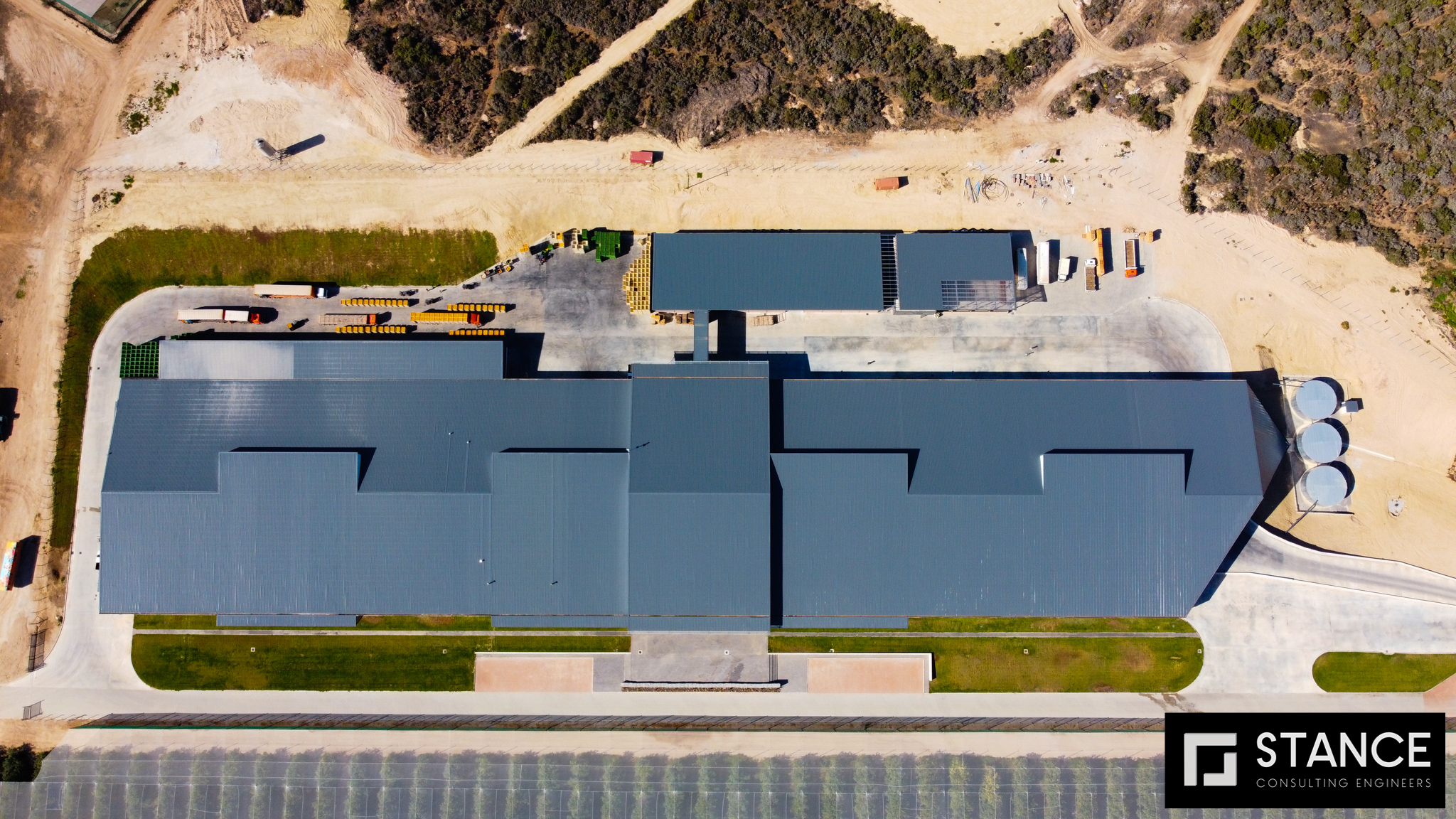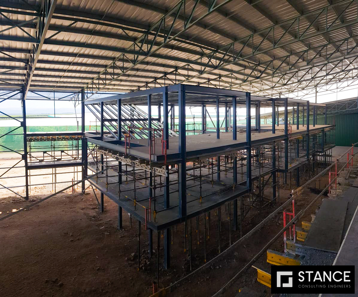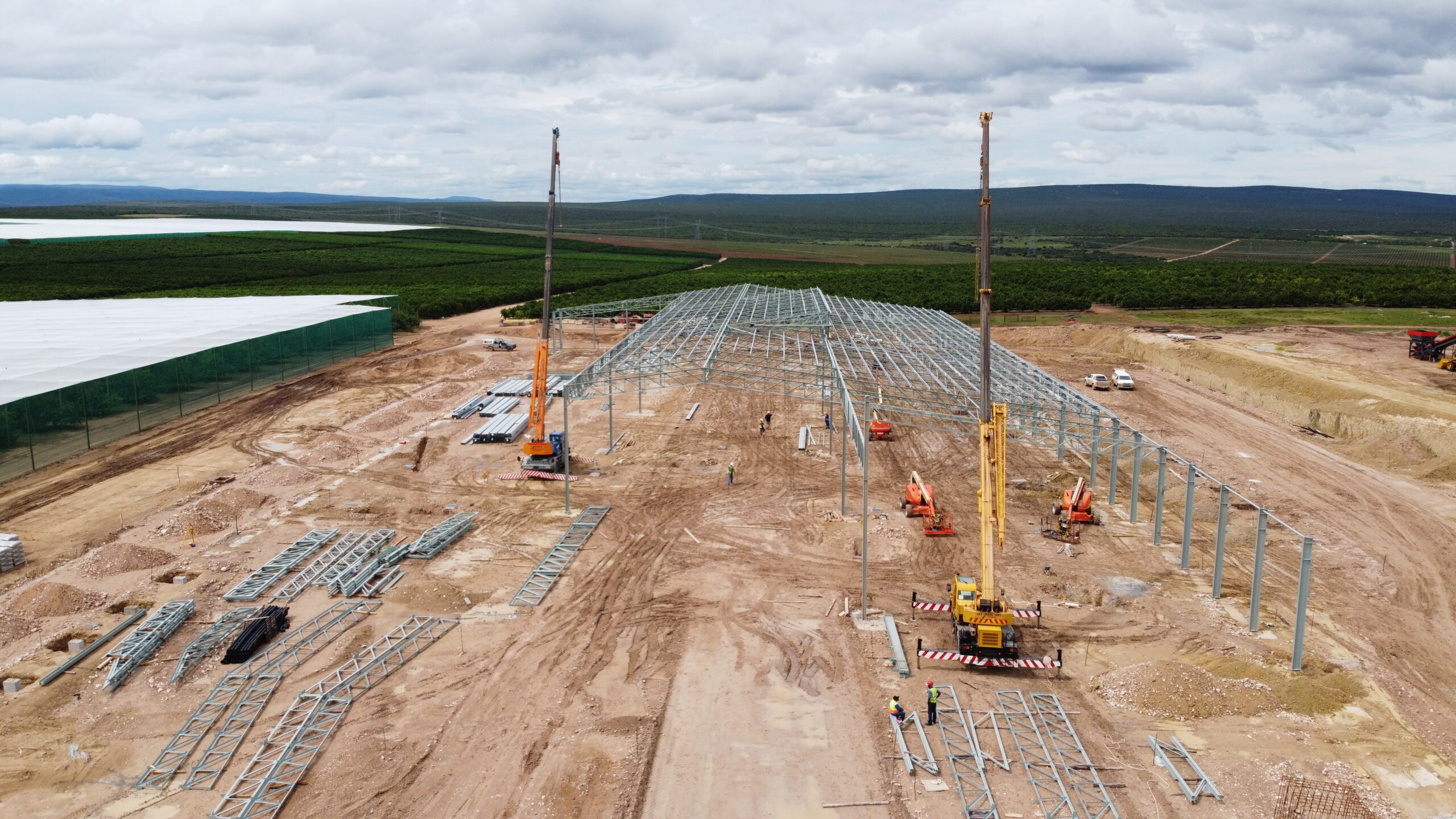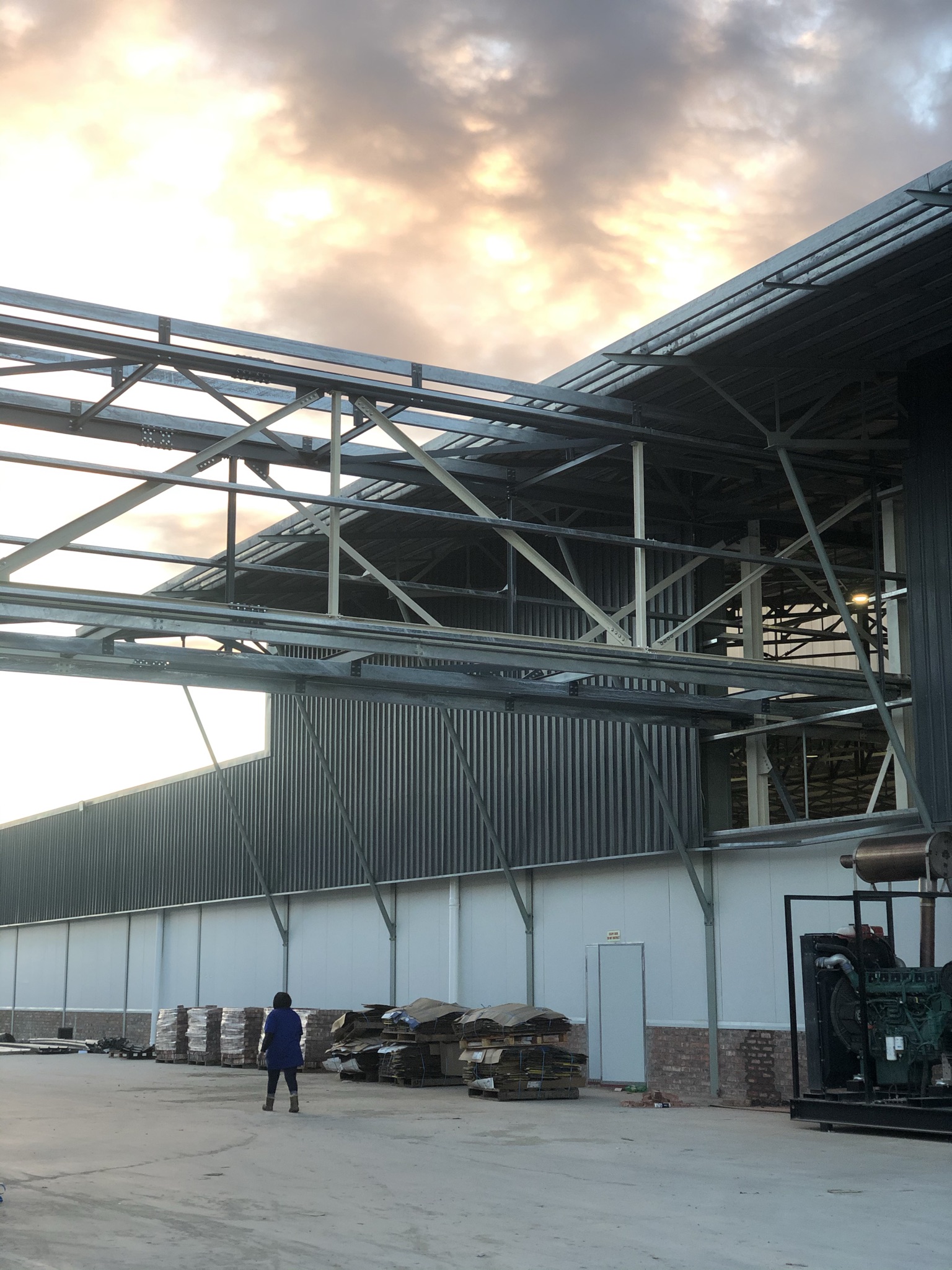 The Woodridge Packhouse project located in Addo in the Eastern Cape is an impressive feat of architectural and engineering design. The architect drew inspiration for the building's shape from the nets that cover citrus for protection against hail, birds, and insects. They aimed to create a skin over the rectangular form of the building, which allowed natural light to flood the interior while also embracing and celebrating the surrounding landscape. The project involved the construction of an aesthetically pleasing structural steel frame building with metal cladding. A total of 688 tons of steel was used, including a variety of profiles.