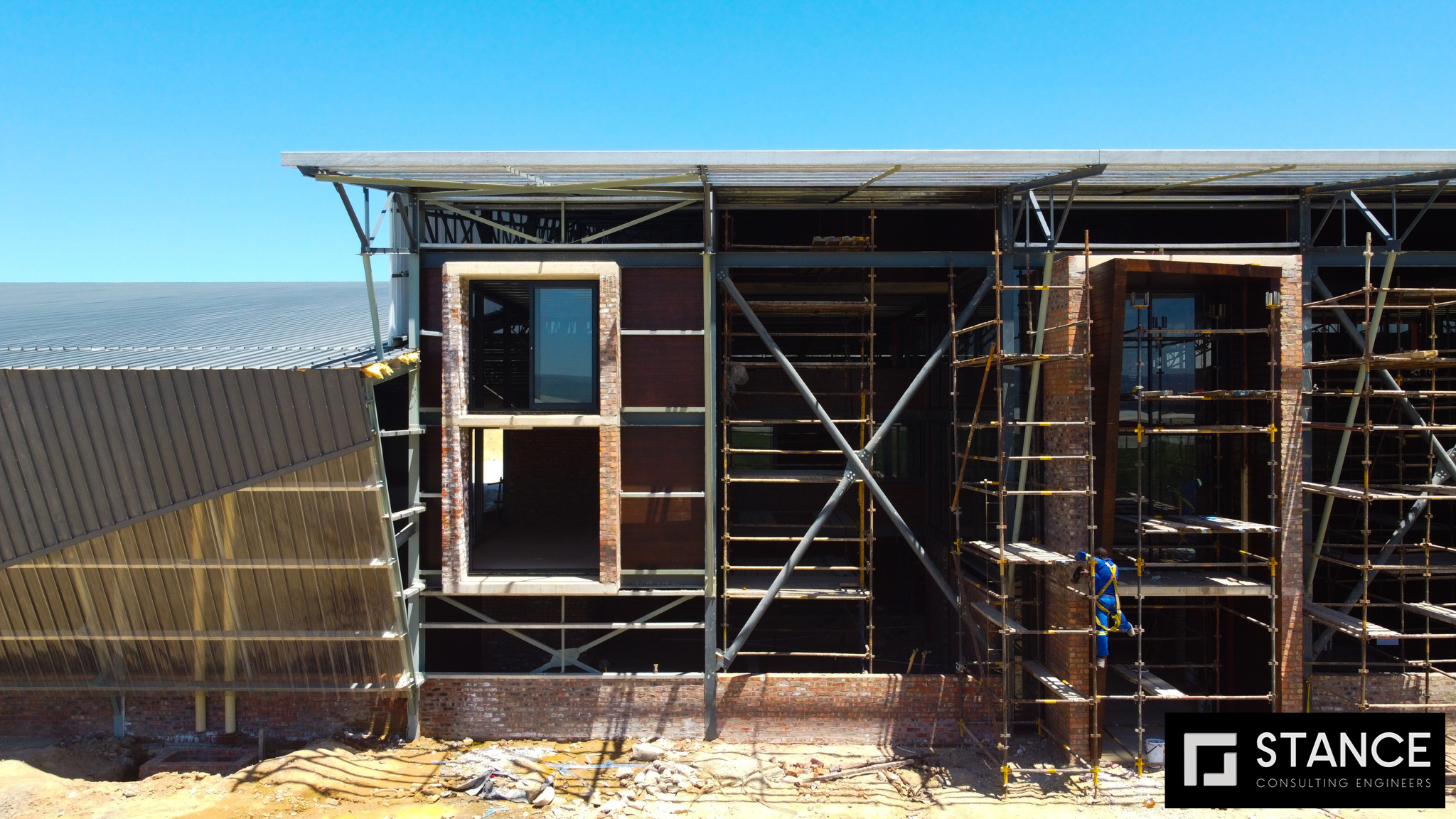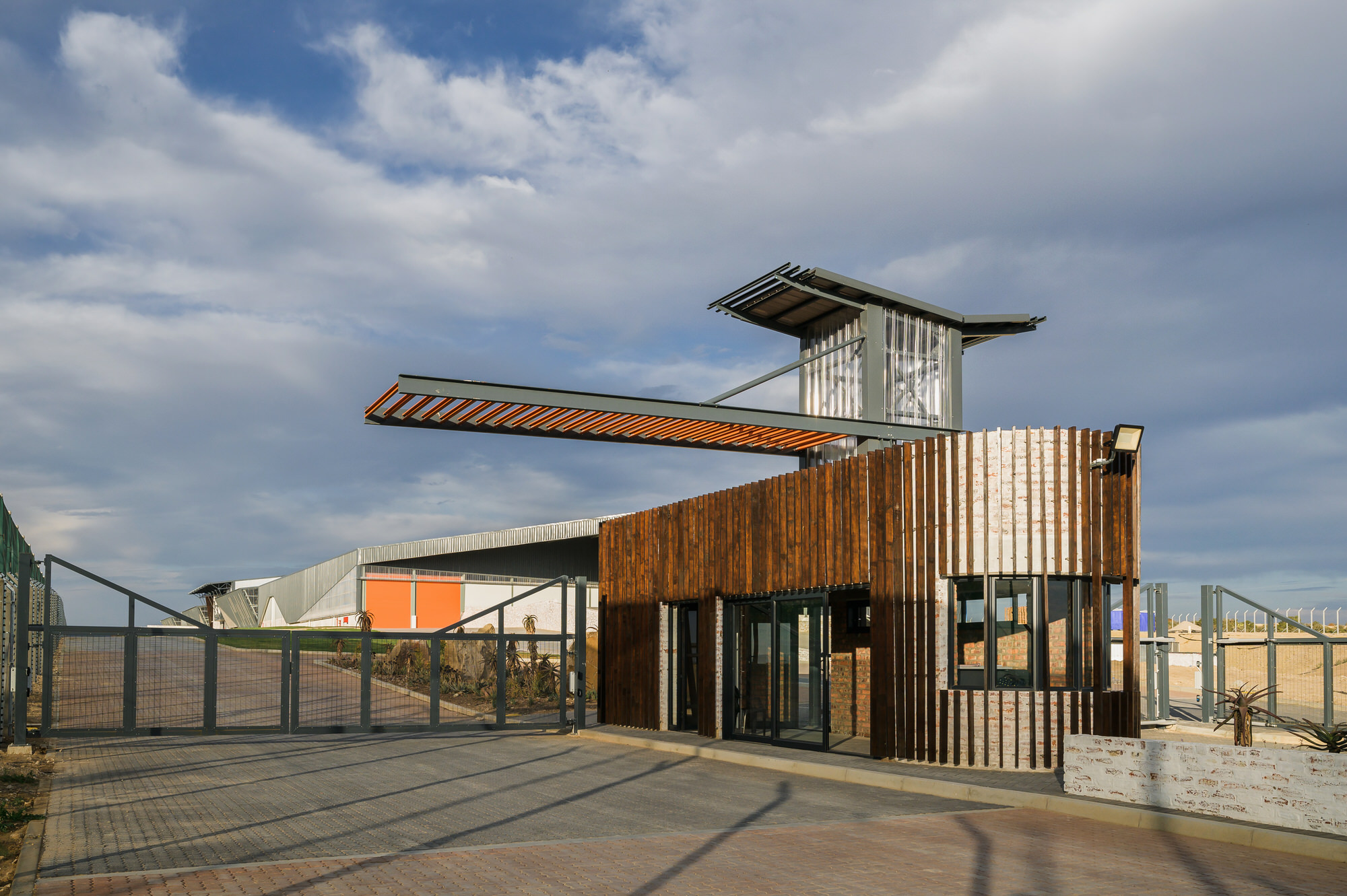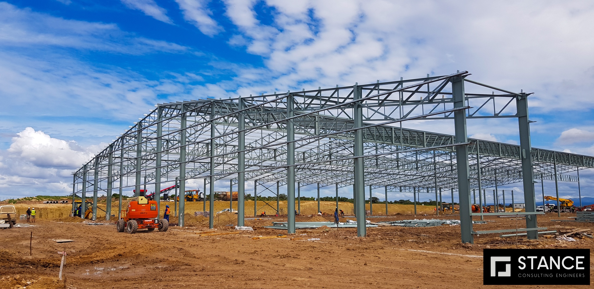 The Woodridge Packhouse project located in Addo in the Eastern Cape is an impressive feat of architectural and engineering design. The architect drew inspiration for the building's shape from the nets that cover citrus for protection against hail, birds, and insects. They aimed to create a skin over the rectangular form of the building, which allowed natural light to flood the interior while also embracing and celebrating the surrounding landscape. The project involved the construction of an aesthetically pleasing structural steel frame building with metal cladding. A total of 688 tons of steel was used, including a variety of profiles.